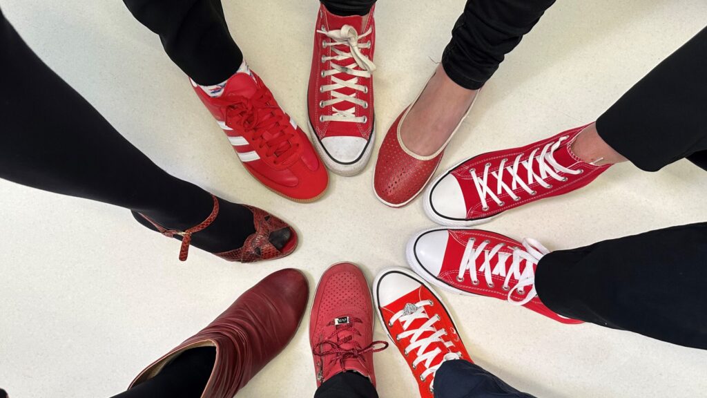 Red shoes sparking conversations