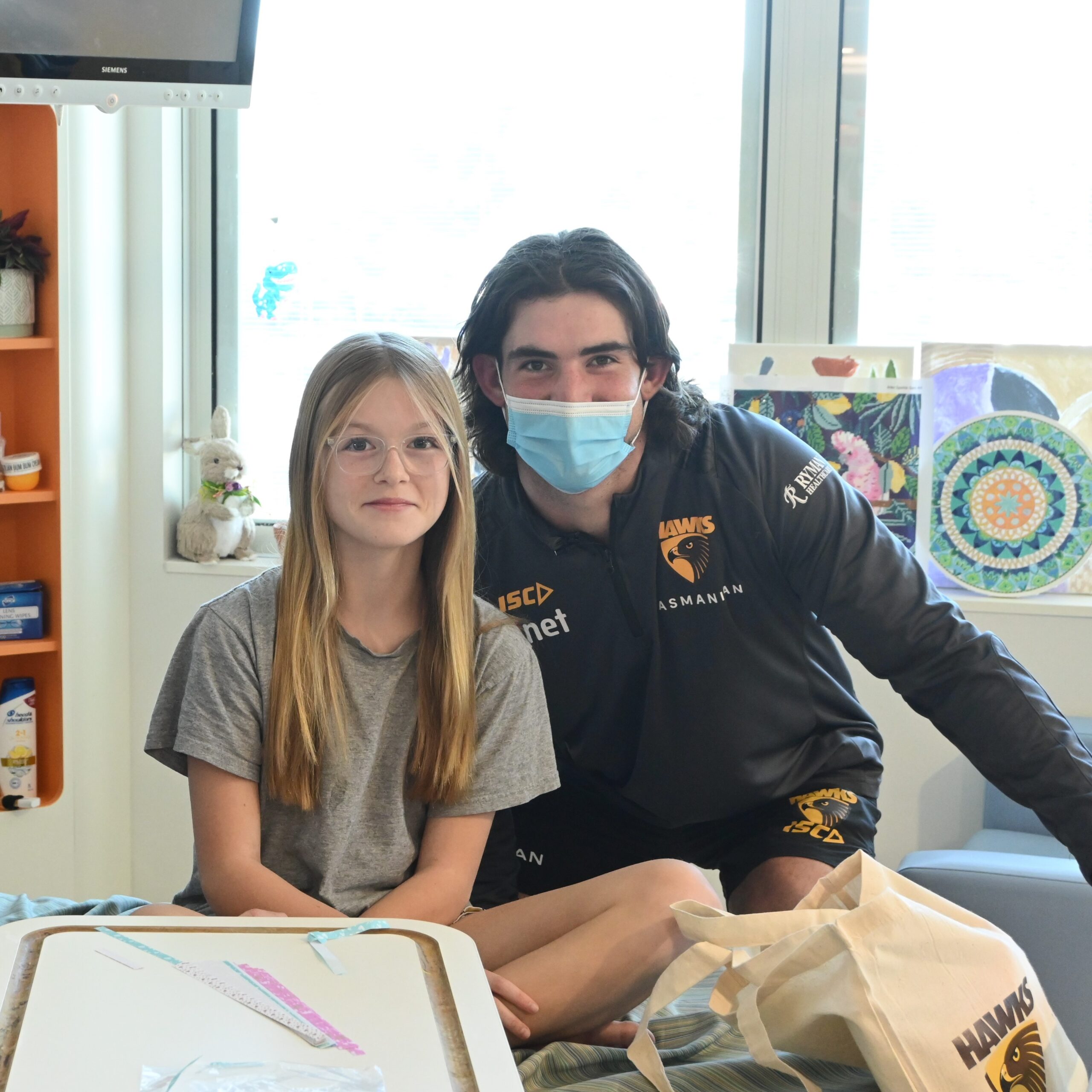 This week, Hawthorn Football Club players Chad Wingard and Jai Newcombe took a break from the field to score smiles at Monash Children’s Hospital.